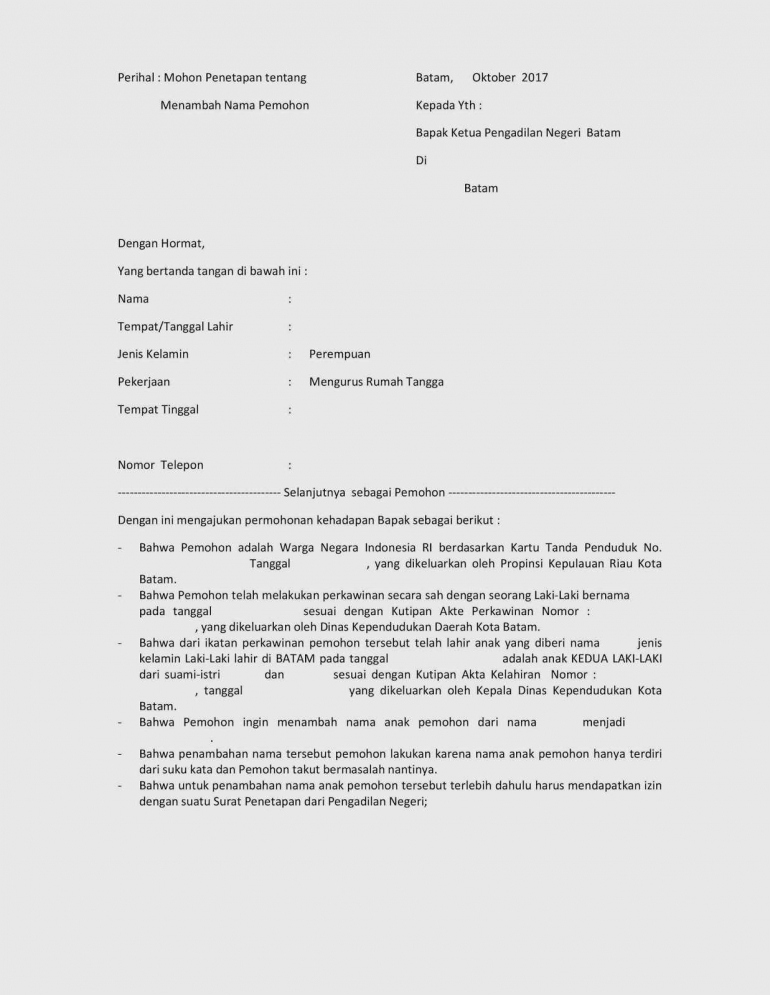Contoh Surat Permohonan Ganti Nama Di Pengadilan Contoh Surat