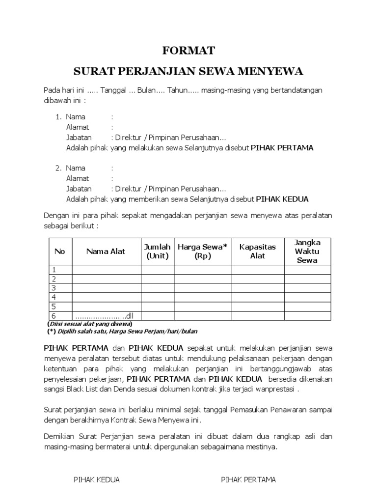 Form Surat Perjanjian Sewa Alat